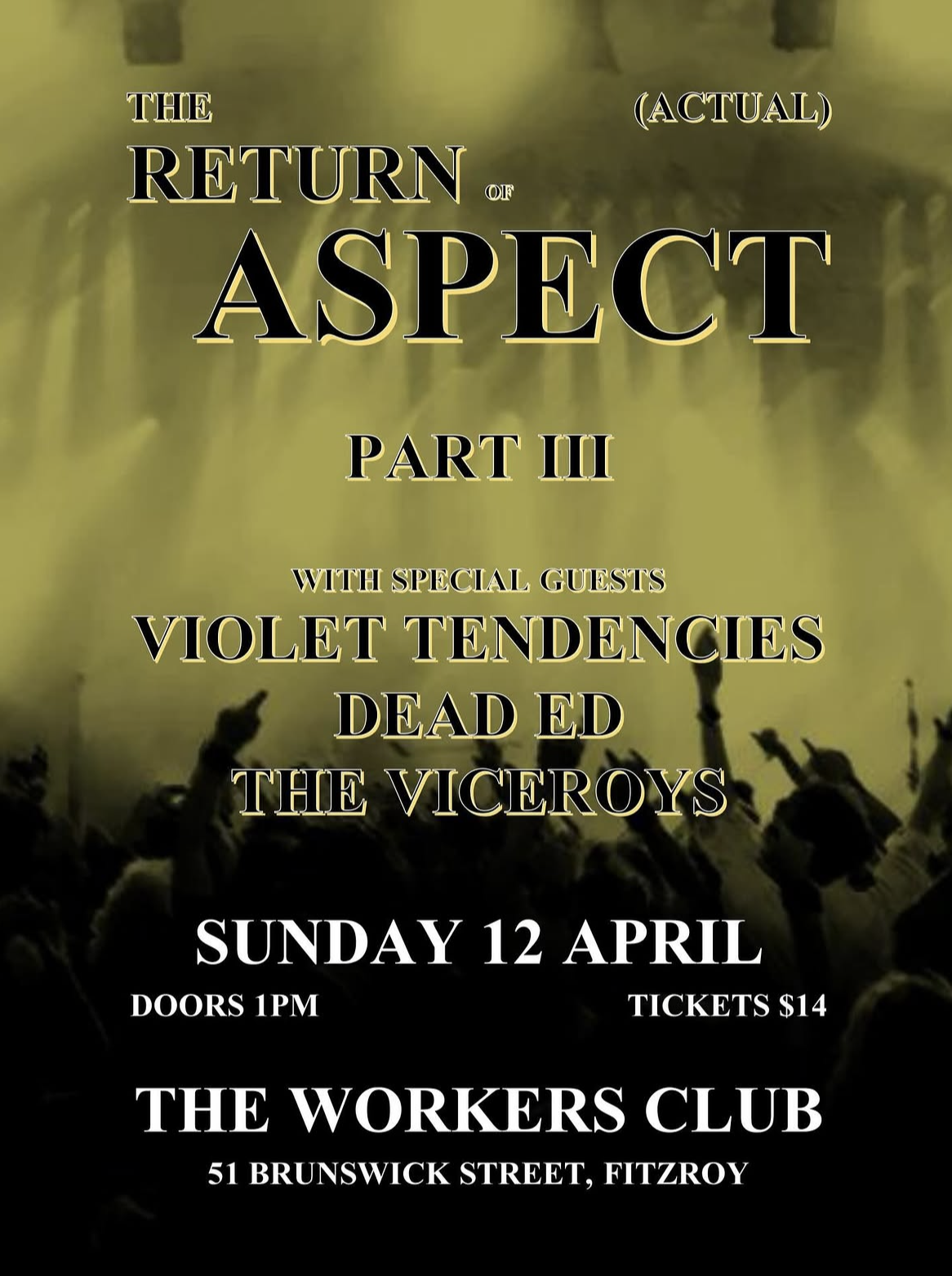 heavy-rock/punkThe good times roll on with Aspect’s Workers debut! The alternative rock quintet, combining the influences of Metallica, Paramore, Coldplay, Stone Temple Pilots and many more, is here with a Sunday matinee to remember, playing an assortment of originals (and maybe a cheeky cover or two) that blends heavy, groovy, upbeat and mellow seamlessly. Ably supported by fellow rockers Violet Tendencies, Dead Ed and the Viceroys, get along and enjoy a Sunday arvo at an iconic Fitzroy venue with a stacked lineup – if you enjoy taking in some Australian rock bands on the rise, this is the place to be.