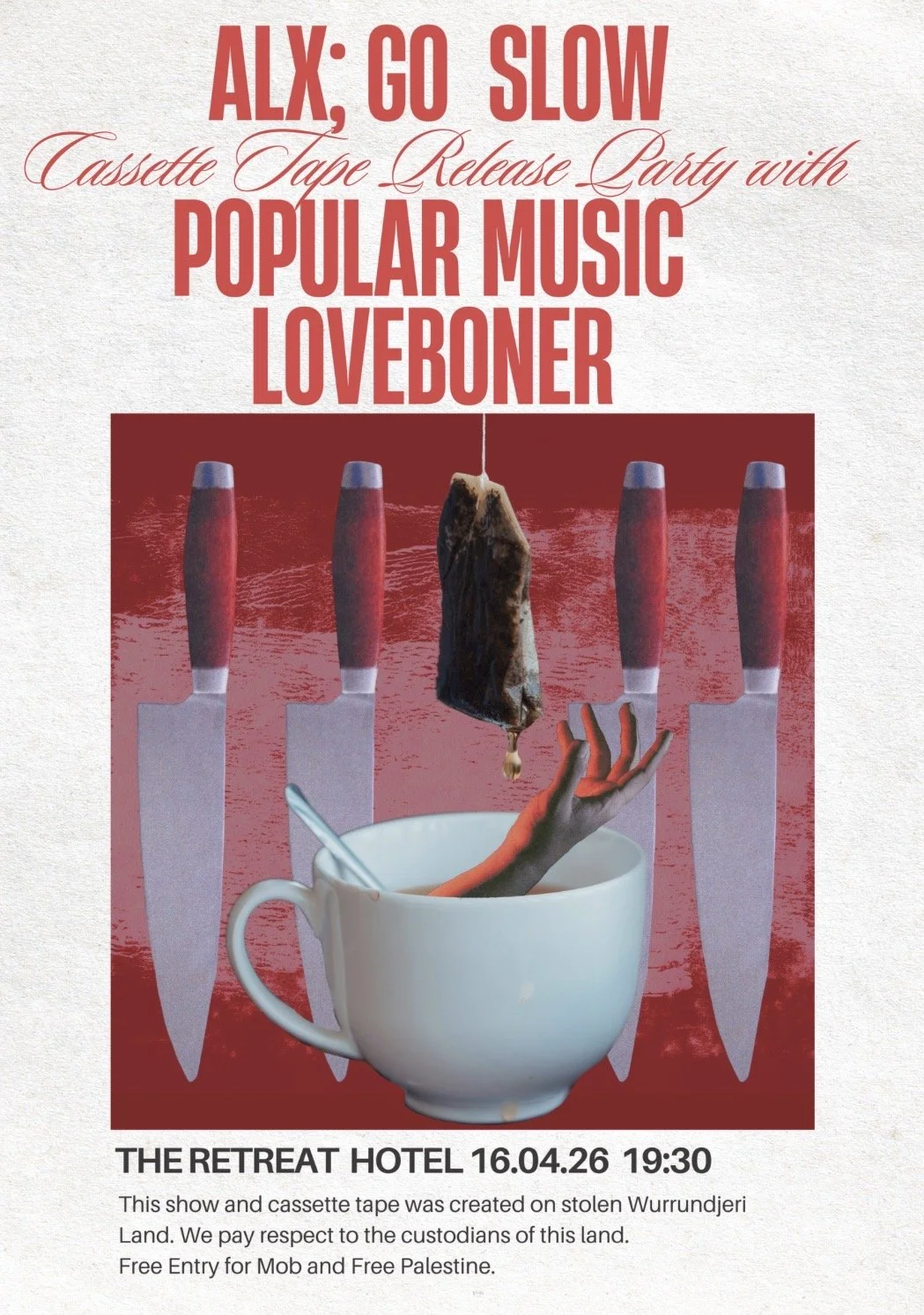 ALX; GoSlow will be delivering guitar smutty roars of fuzz at this long awaited cassette tape launch party, accompanied by Burakashi band. Joining them is local party punk raconteurs, Loveboner, and the delicious serenading theatrics of LA's duo Popular Music