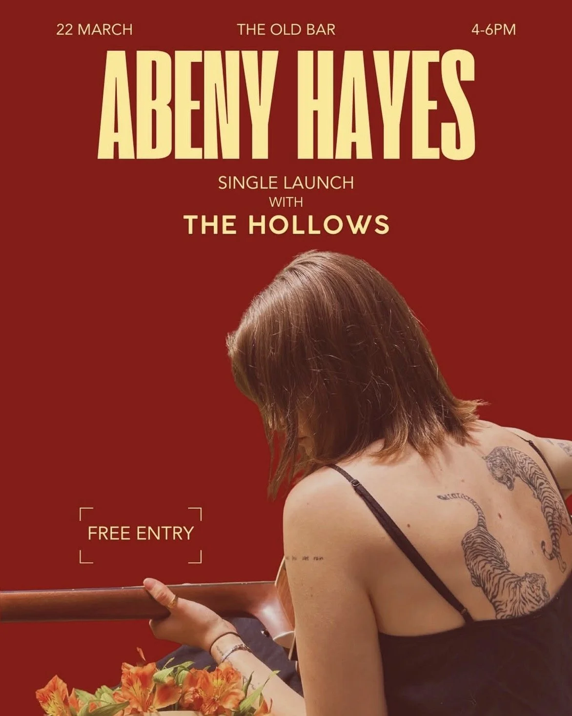 indie-folk/singer-songwriterCelebrate Abeny Hayes’ debut single “Root to Weed” on the 22nd of March alongside indie-folk supports, The Hollows. It’s sure to be a nice and relaxed afternoon featuring intricate and beautiful lyrics and sounds.