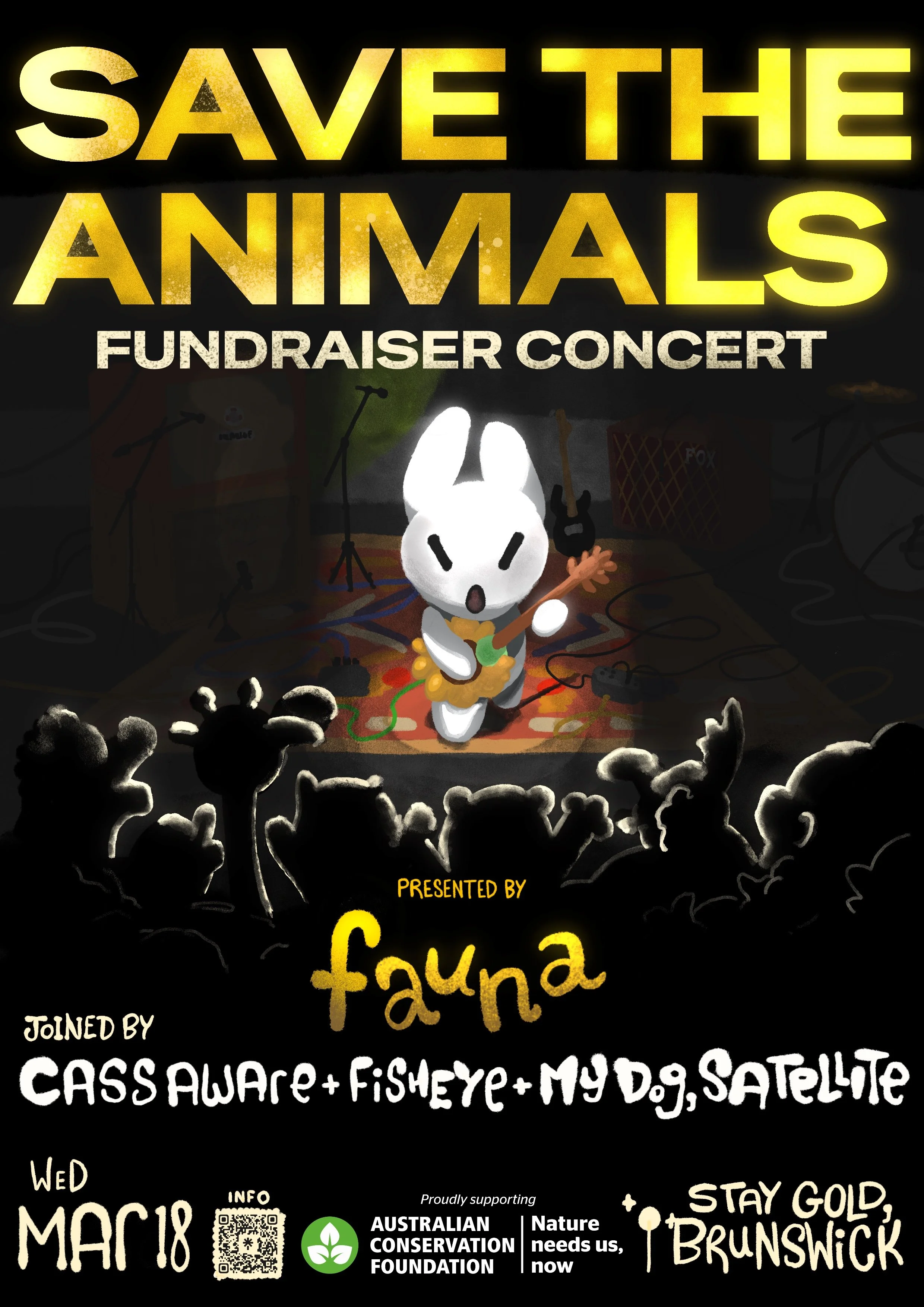 indie-rock/alternativeHailing from all different climates, landscapes and habitats around planet earth, the stars have aligned for the mystical sounds and sonics of fauna to roar into the ears of the music scene. These animals use their indie-rock and garage rock revival inspirations to foster some high energy and bittersweet calls of the jungle! Join fauna as they team up with local Melbourne talents to support the conservation of endangered species, using live rock music to give those animals a voice.
